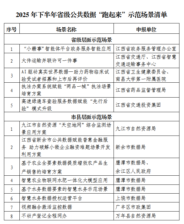 地方动态丨江西正式公布首批13个省级公共数据“跑起来”示范场景