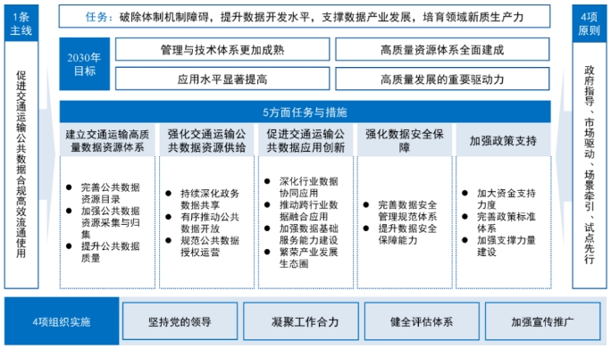 (一)构建交通运输公共数据制度体系。制定《交通运输部关于加快交通运输公共数据资源开发利用的实施意见》(以下简称《实施意见》),搭建“十五五”时期交通运输公共数据资源开发利用的顶层框架。