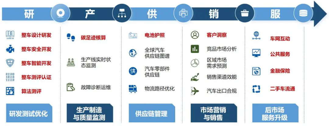 整合研发检测数据:采集汽车风洞、安全碰撞、性能测试等各类检验检测数据,形成覆盖整车与关键部件的研发数据体系。