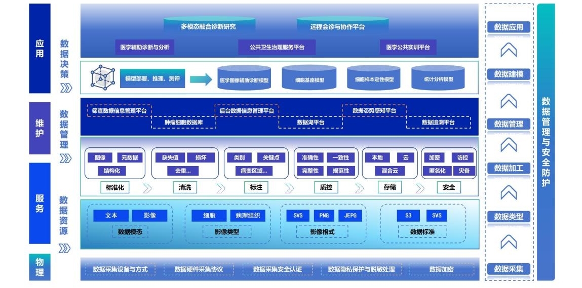 二是打造全流程数据质控闭环,驱动产业价值转化。建立“标准化采集→数据加工、管理→动态模型训练及推理→安全质控防护”全链条智能化质控体系,确保数据高准确性与可靠性。在湖北省适龄妇女宫颈癌筛查项目中实现了湖北省103县、1430个乡镇社区标本制备及诊断全流程动态管理,近三年创造经济效益达数亿元,驱动了医疗产业创新。