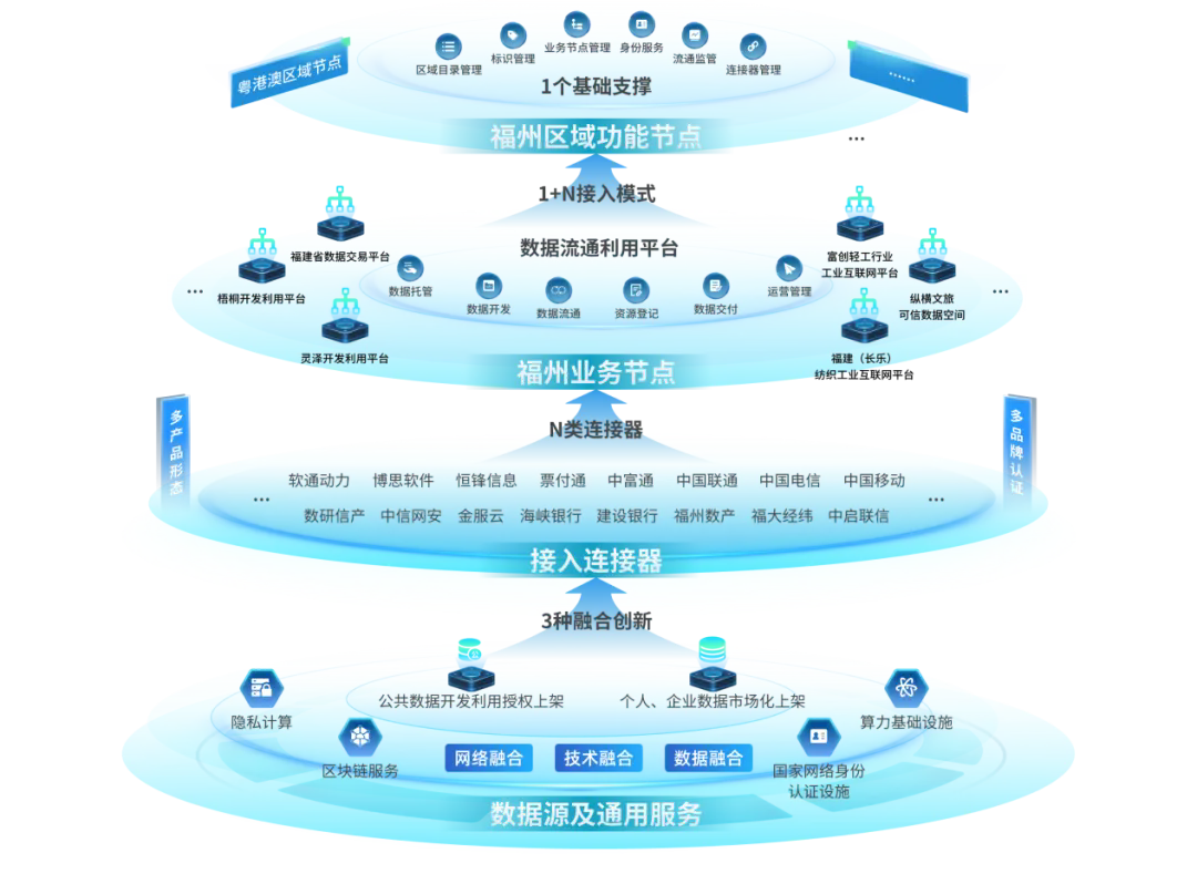 福州作为国家数据基础设施首批先行先试城市,以“数联榕城”为愿景,在福建率先构建区域统一、横纵贯通的数据流通基础设施体系。为破解数据“供不出、流不动、用不好”难题,创新构建“1中心节点+N行业节点”架构:中心节点承接国家数据基础设施相关标准并实施全流程安全监管;行业节点深耕纺织新材料、新型显示等特色产业及医疗影像云等民生领域,形成“全域覆盖、按需接入”生态。通过整合市公共数据开发利用平台、省工业互联网平台等资源,融合数据要素、安全技术、高速数据网络能力,推动公共数据与产业数据价值倍增。福州数联网这条“数据高速路”,将打造覆盖广泛、连接多级、融合创新的数据流通枢纽,为数据基础设施建设和运营、数据要素市场化改革贡献可复制的福建范式。