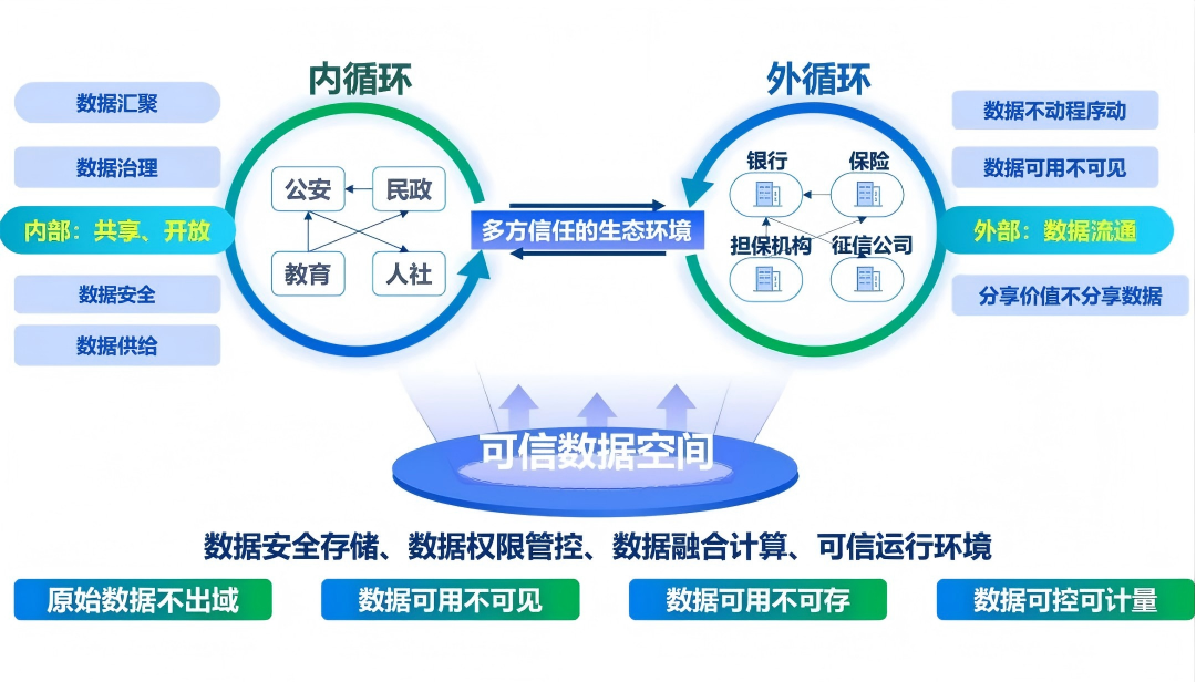 可信流通是数据赋能的关键基础。浪潮云作为智慧系统的全场景运营商,成功探索了技术突破与生态共建双轮驱动下的数据要素市场化新路径,构建了具备快速交付、统一运营能力的“标准化”可信空间数据流通利用服务平台。通过搭平台、建标准、统运维、保安全四维协同实现全局化推进,实现了从被动防护到主动免疫的跨越式升级,形成快速复制推广的数据产品及场景解决方案,有力支撑全国一体化数据市场、保障数据安全流动。基于平台能力,目前浪潮云联合济南财金集团已研发4款金融模型产品,依托社保等数据构建9800余项指标,助力“泉融通”平台放款金额超14.71亿元。
