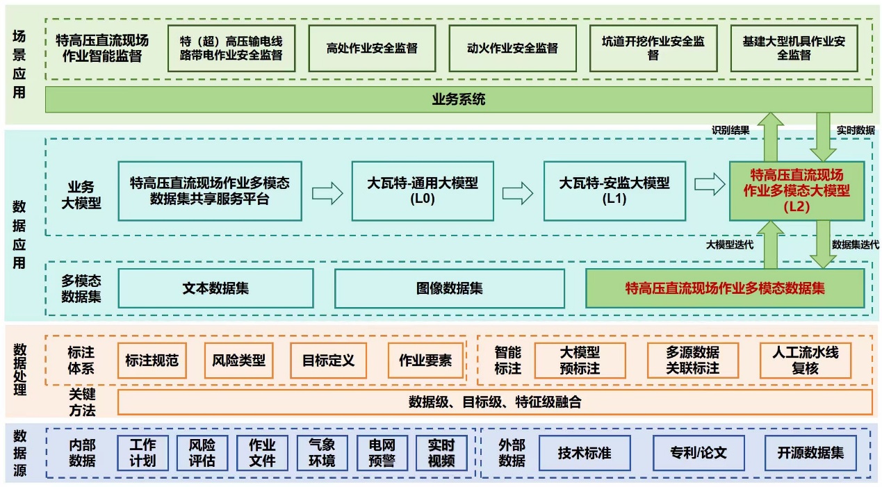 二是打造特高压直流现场作业多模态数据集质量保障范式。建立具备超200项特高压直流作业风险识别能力的智能预标注模型,实现数据半自动化标注,降低标注成本80%以上。构建“作业前评估、作业中监督、作业后检查”的人机协同应用体系,将数据质量校验嵌入现场作业安全监督流程链条,实现特高压直流现场作业多模态数据集的自动化构建。
