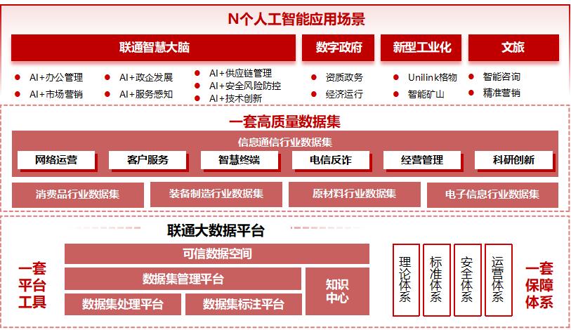 一是构建一套高质量数据集。基于“企业自建+合作共建”的数据集建设模式,发挥集约化数据资源优势,统一归集与处理全域数据,组织专家标注,打造网络运营、客户服务、电信反诈、经营管理等6个信息通信高质量数据集,总量达53.5TB,数据集质检合规率超98%。