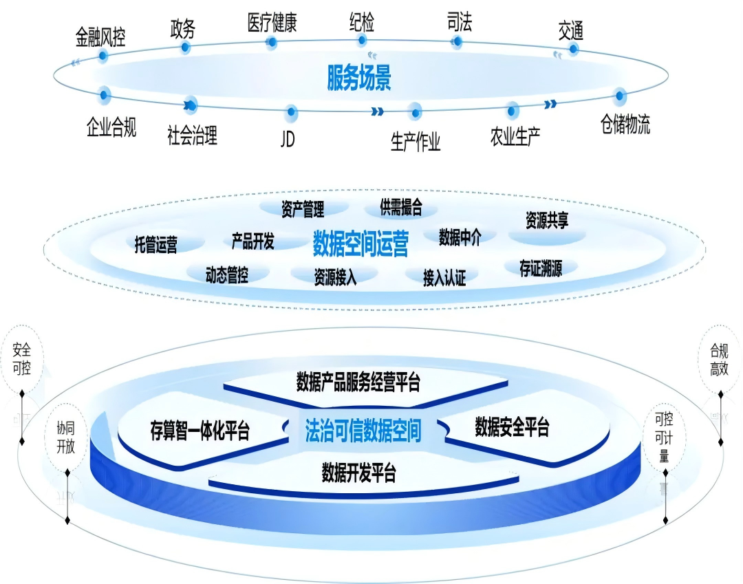 中国司法大数据研究院打造的法治可信数据空间通过构建跨部门、跨企业的法治数据要素价值共创生态系统,成功联接产业链上下游多方主体,实现法治数据资源的规模化流通和共享利用,有力推动法治数据赋能经济社会高质量发展。法治可信数据空间构建数据治理、联邦学习、技战法及开发服务四个应用开发平台,为各类用户提供模型构建、产品研发等一站式数据服务能力。法治可信数据空间采用联邦学习、安全沙箱等技术手段,实现“数据不动模型动、数据可用不可见、原始数据不出域”,在确保数据安全的同时,实现数据价值安全释放、模型和应用高效开发、服务可靠可信提供。法治可信数据空间已支撑政府、机构、企业等各类主体500余个,赋能金融信贷风控、企业合规、行业监管、司法便民等场景,实现数据“场景化”赋能。