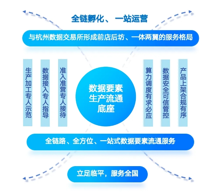 联通数据智能有限公司与杭州市临平区联手打造的杭州数据要素运营中心,是浙江省内首批落地的、具备多元数据开发利用能力的可信数据空间。中心汇聚了信息化项目研发、安全运营、模型训练、数据加工、接洽展示等五大核心模块,全面构建数据易得、工具好用、产品好卖、效益可观的数据要素生态环境,着力探索数据要素价值释放新路径。通过线上线下一体化数商服务体系,融合基础运营和价值运营,实现数据要素生产、加工、流通全链条产业链聚集,持续促进数据要素合规流通和高效利用。