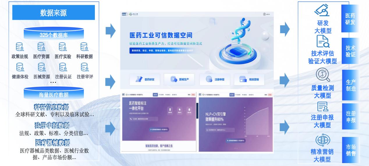 中电工业互联网有限公司联合中国科学院深圳先进技术研究院、广东省数据要素产业协会与中科加能建设医药工业可信数据空间,融合隐私计算、区块链与人工智能等前沿技术,构建覆盖研发、验证、质检、注册、营销的全链数据底座。平台汇聚多源数据,形成医疗器械、医药科研等多个高质量数据集,实现跨主体数据“可用不可见、可控可计量”。同时部署AI注册、AI质检、AI验证、AI评估、AI营销五大智能系统,深度赋能注册申报、质量管控、市场推广等核心场景。已服务百余家企业,注册周期缩短90%,质检准确率提升0.6%,年节约人力成本上百万元。在此基础上,联合深圳市宝安区有效探索公共数据与产业数据融合赋能的数据产业创新运营模式,联合长沙市成功开展医药工业可信数据空间的应用实践,进一步推动医药工业智能化升级,助力广东、湖南等城市推进医药全链数据协同创新与产业高质量发展。