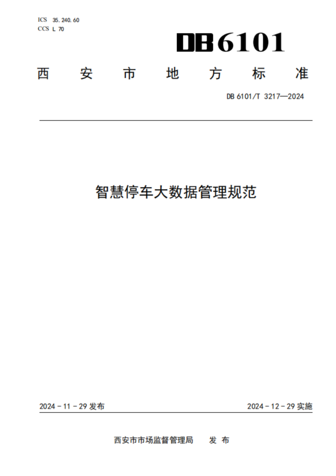 2024年12月29日,陕西省西安市地方标准《智慧停车大数据管理规范》(DB6101/T3217-2024)正式实施。