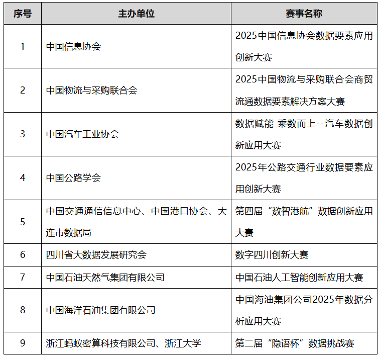 2025年4月,国家数据局会同中央网信办等19部门印发了《关于举办2025年“数据要素×”大赛的通知》,为鼓励社会各界积极参与,今年继续面向第三方赛事开放全国总决赛优秀项目推荐渠道。经严格审核,现将获得2025年“数据要素×”大赛全国总决赛推荐资格的第三方赛事公布如下。